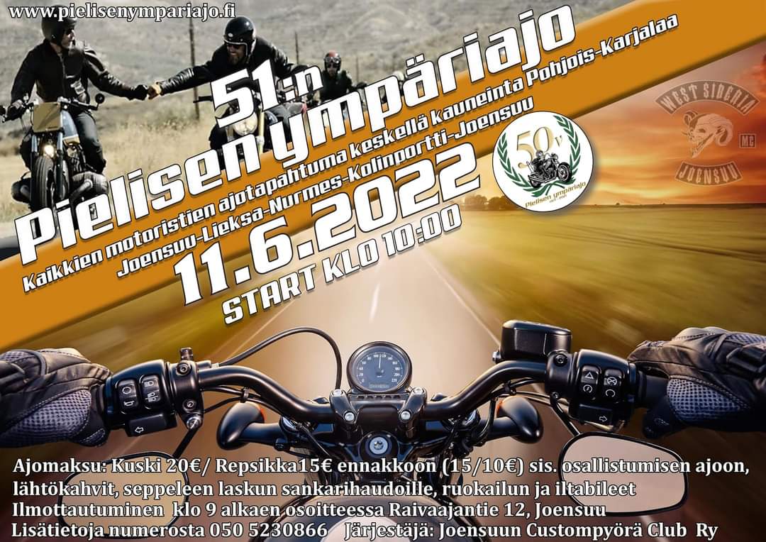 Lauantaina pöristellään taas Pielisen ympäri... Lähtö West Siberia MC:n kerhotilalta Raivaajantie 12 Joensuu.