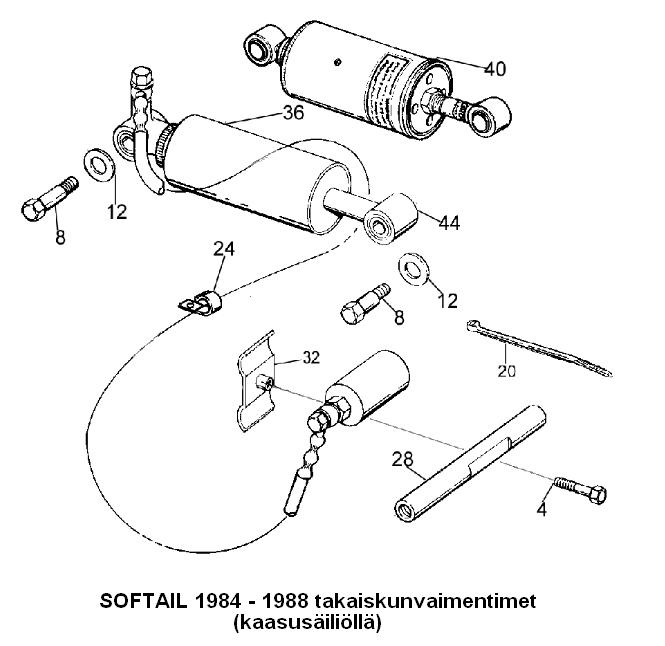 Kaasusäiliölliset Softail iskunvaimentimet vuosille 1984 - 1988
