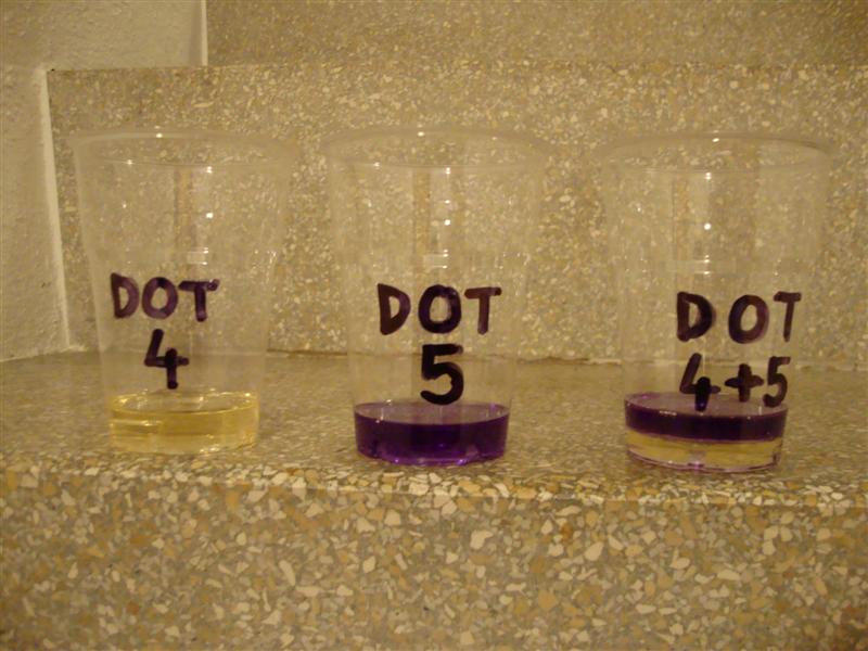 Koe jarrunesteiden sekoittumisesta. DOT4, DOT5 ja DOT4/DOT5