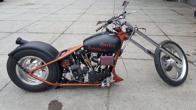 Tällaista on tulossa täältäpäin liikenteeseen, kunhan saan nahkurilta satulan ja tankinvälin peiton. Keulaa nostetaan pystympään, niin ei 'nojaa' etukenossa ja saan vähän lisää tilaa rungon alle ettei ota ihan joka paikassa putket kiinni :-) Koneesta on juttua tuolla 'Panshovel stroukkausta' - ketjussa. Tämä on entinen 'Marmoripyörä', jos joku vielä muistaa kyseisen ulkoasun.