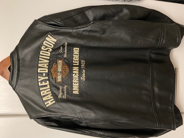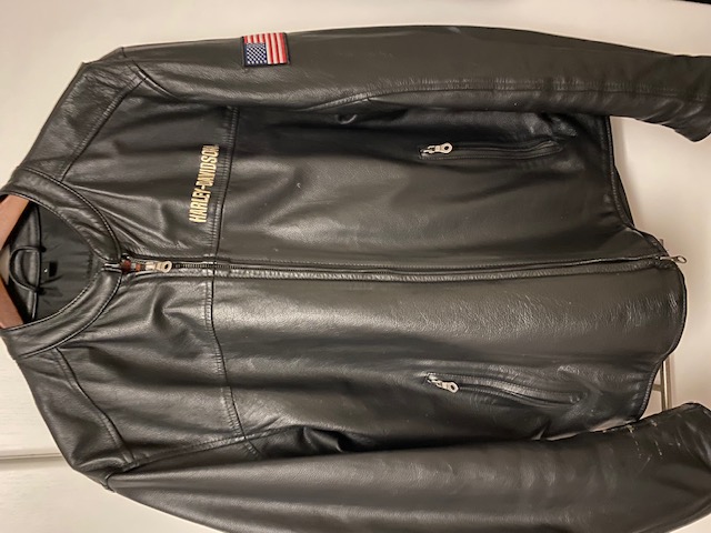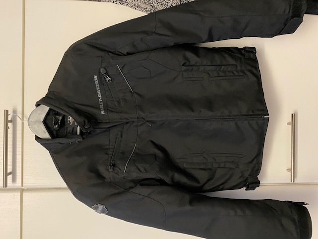 Nahkainen ajotakki, muutaman kerran käytetty, toisen hihan vetoketjun vedin puuttuu ja toisessa hihassa jäljet.