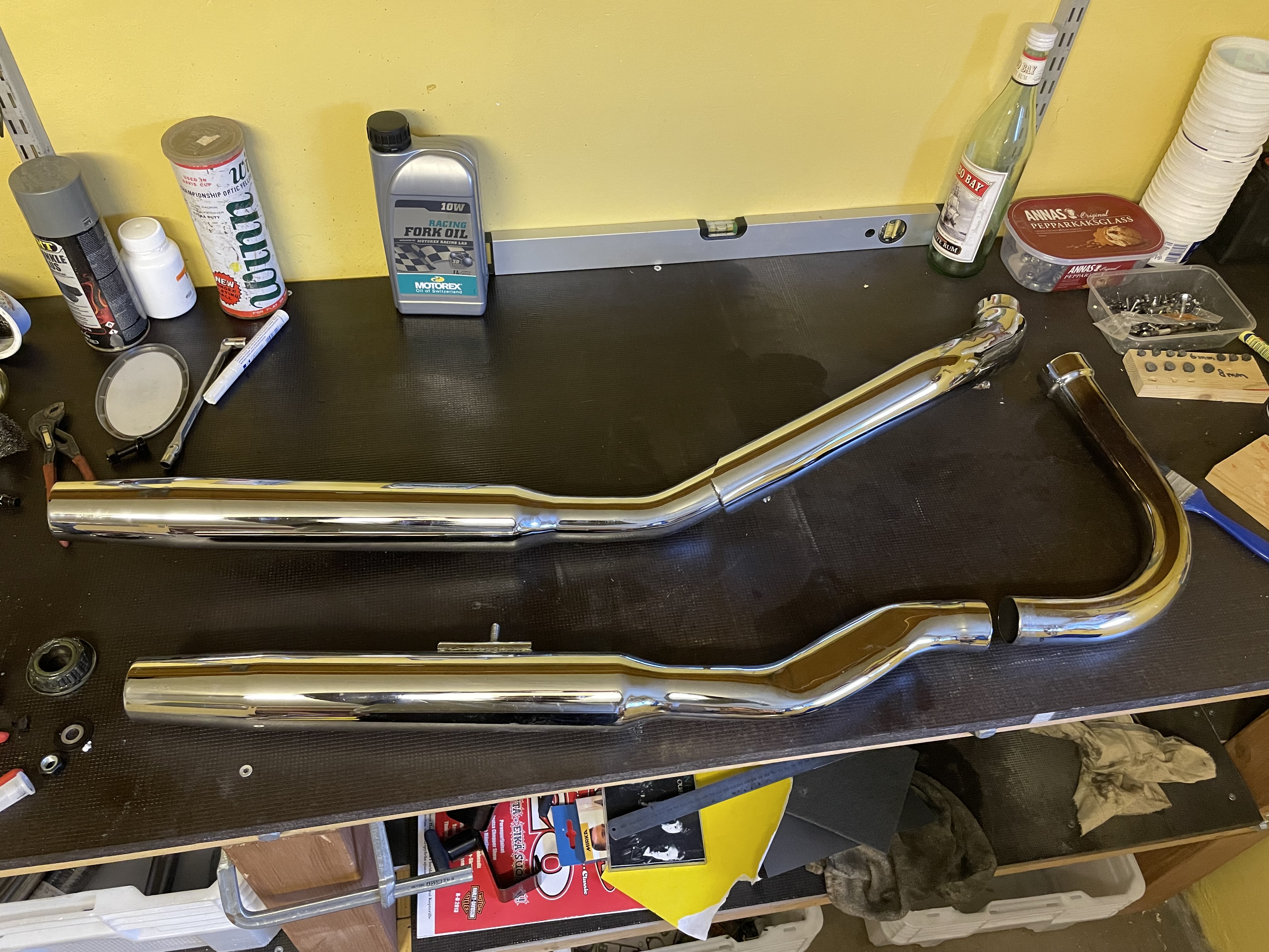 Paughcon valmistamat pakoputket pannuun, sopii niin jousiperäiseen kuin jäykkäänkin. Kunto kuin uusi, todella vähän aikaa ollut kiinni. Etuputki hieman lämmössä sinistynyt, kiillottamalla tietysti kuin uusi. Kiinnikerauta hukkunut, mutta sellaisen nyt vääntää kuka vaan. Sijaitsee Nokialla josta voi noutaa, matkahuollolla kulkee kauemmaksikin ostajan kuluilla. Hinta 250€, nämä on uutena tonnin. o44o8195oo