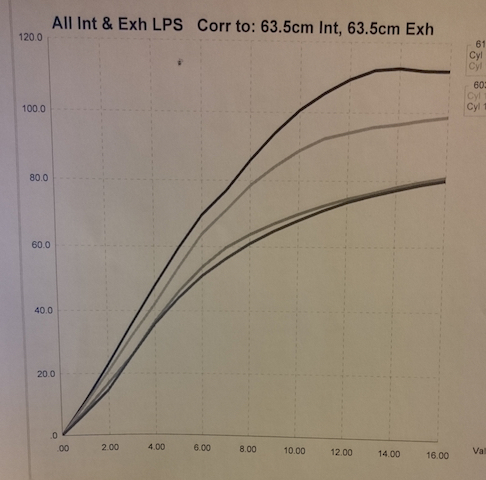 No niin, nyt on kannetkin saatu ja virtausmittaus suoritettu. Muotoilujen lisäksi imuventtiili vaihtui isompaan ja pakopuolelle ei juuri mitään tehtykään kun ei ollut tarvista. Pakopuoli virtasi n. 105hv takapyörätehoon saakka jo vakiona, nyt imupuoli virtaa muutaman hepan enemmän kuin pako. Noin 90-95hv virityksiin ei olisi tarvinnut tehdä kansille yhtään mitään, toivotaan että nyt mentäisi tuosta yli niin ei ole tullut tehtyä turhaa työtä... ;)