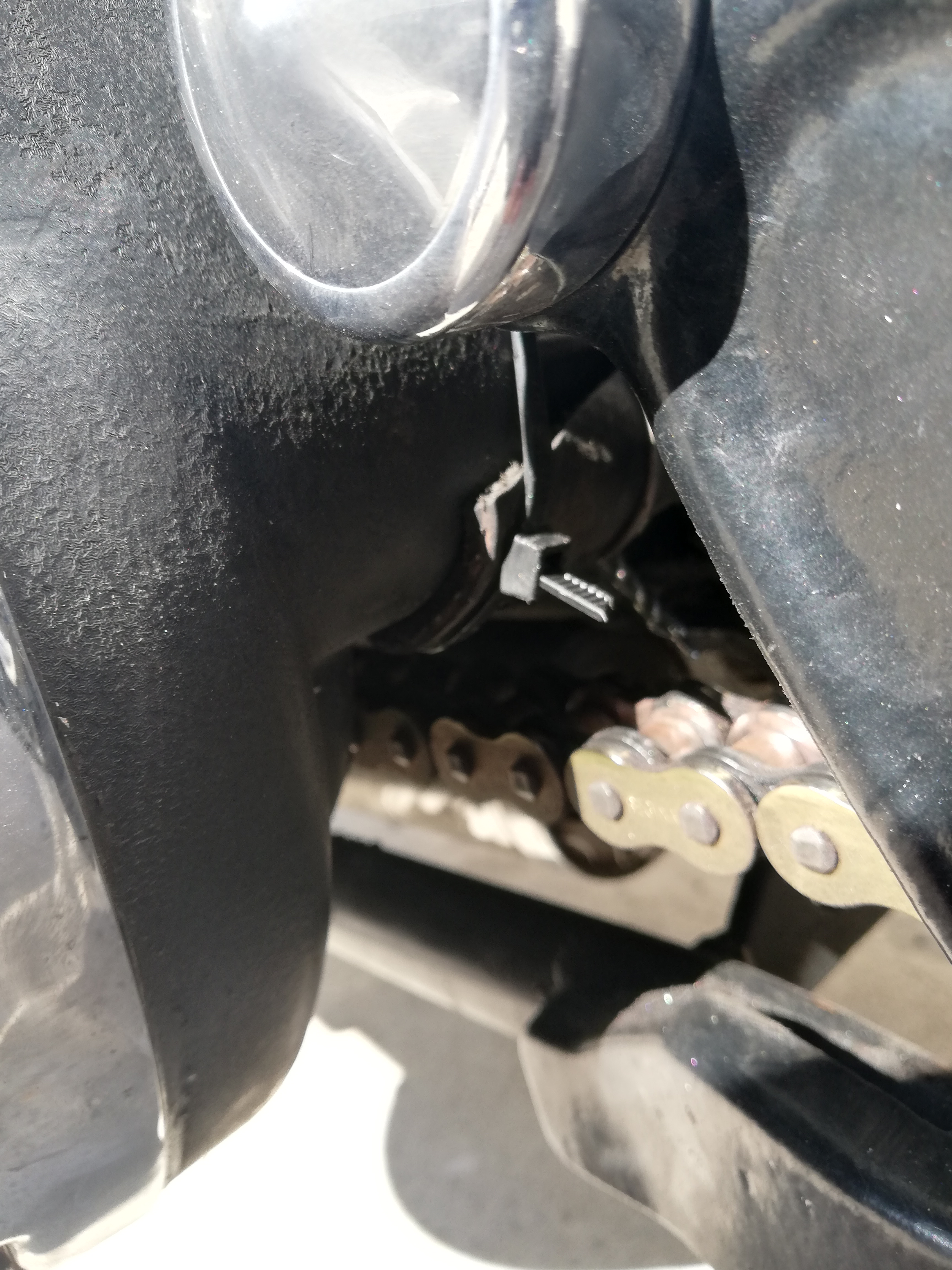 Ketju osuu isommissa töyssyissä ensiokopan sisempään lohkoon. Hitsasin kerran jo reiän umpeen. Kiristin ketjut. Nostin perääkin hiukan ylemmäs. Ei näyttäny tämä piisaavan.