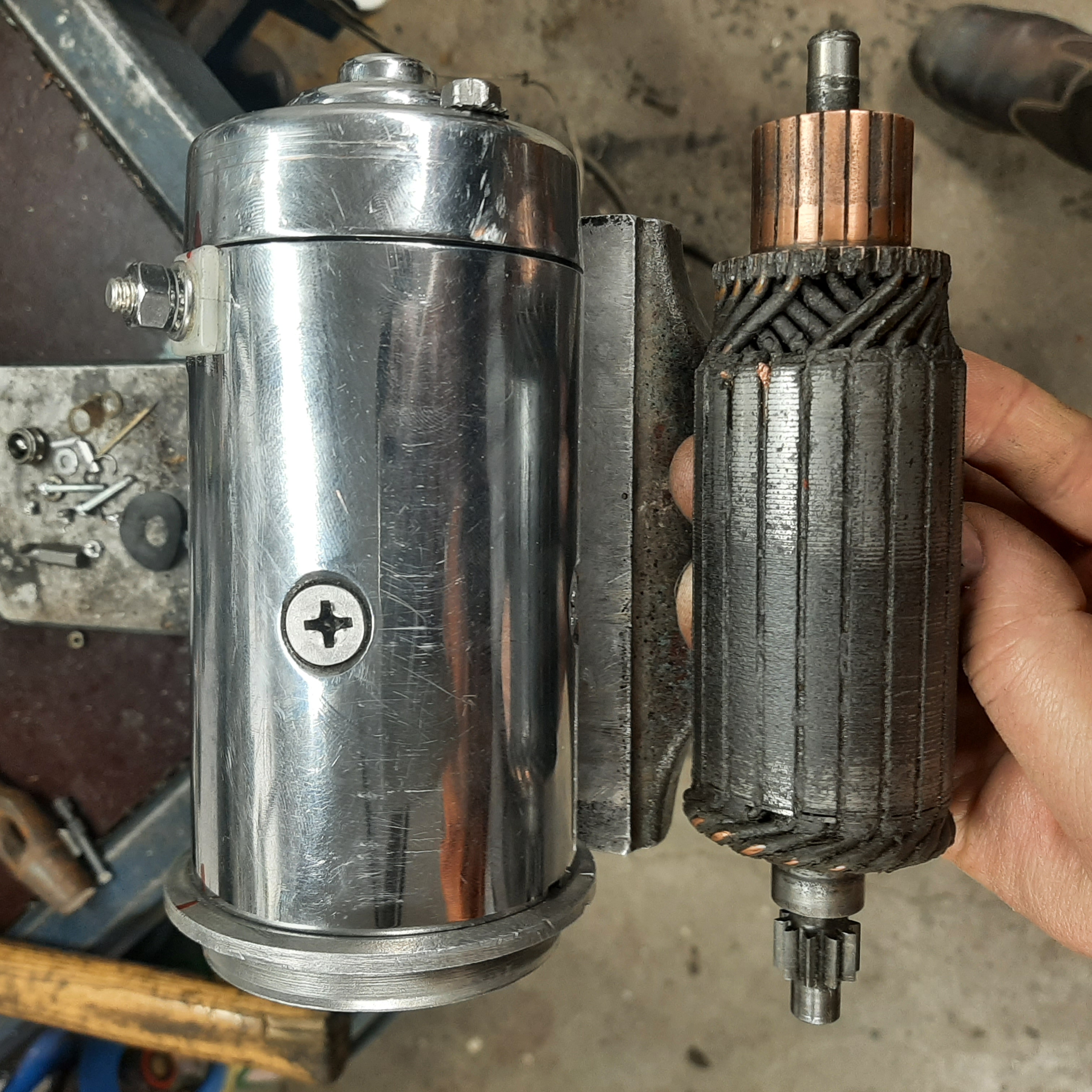 Löytyykö palstalaisilta tämän näköistä startin ankkuria? Ankkurin mitat kiinnostaisi ensialkuun, että ollaanko yhtään samoilla jäljillä. Ajatus olisi istuttaa HD:n ankkuri, Nortonin alkuperäiseen staattoriin.