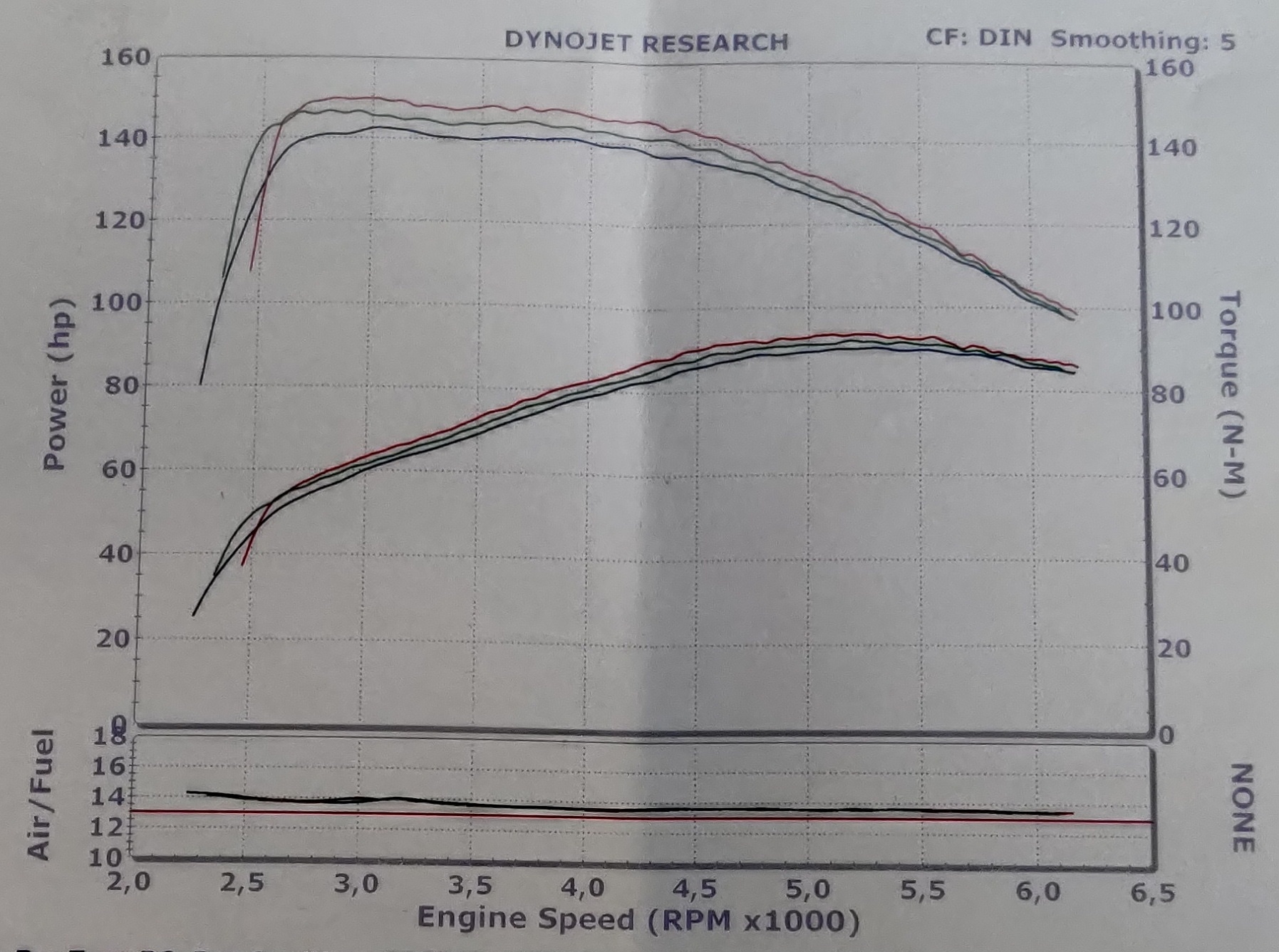 141 nm / 87 hp oli eilisen lukemat. Vääntöä on 140 nm koko matkan 2000-4500 rpm. Mitään huipputehoja ...