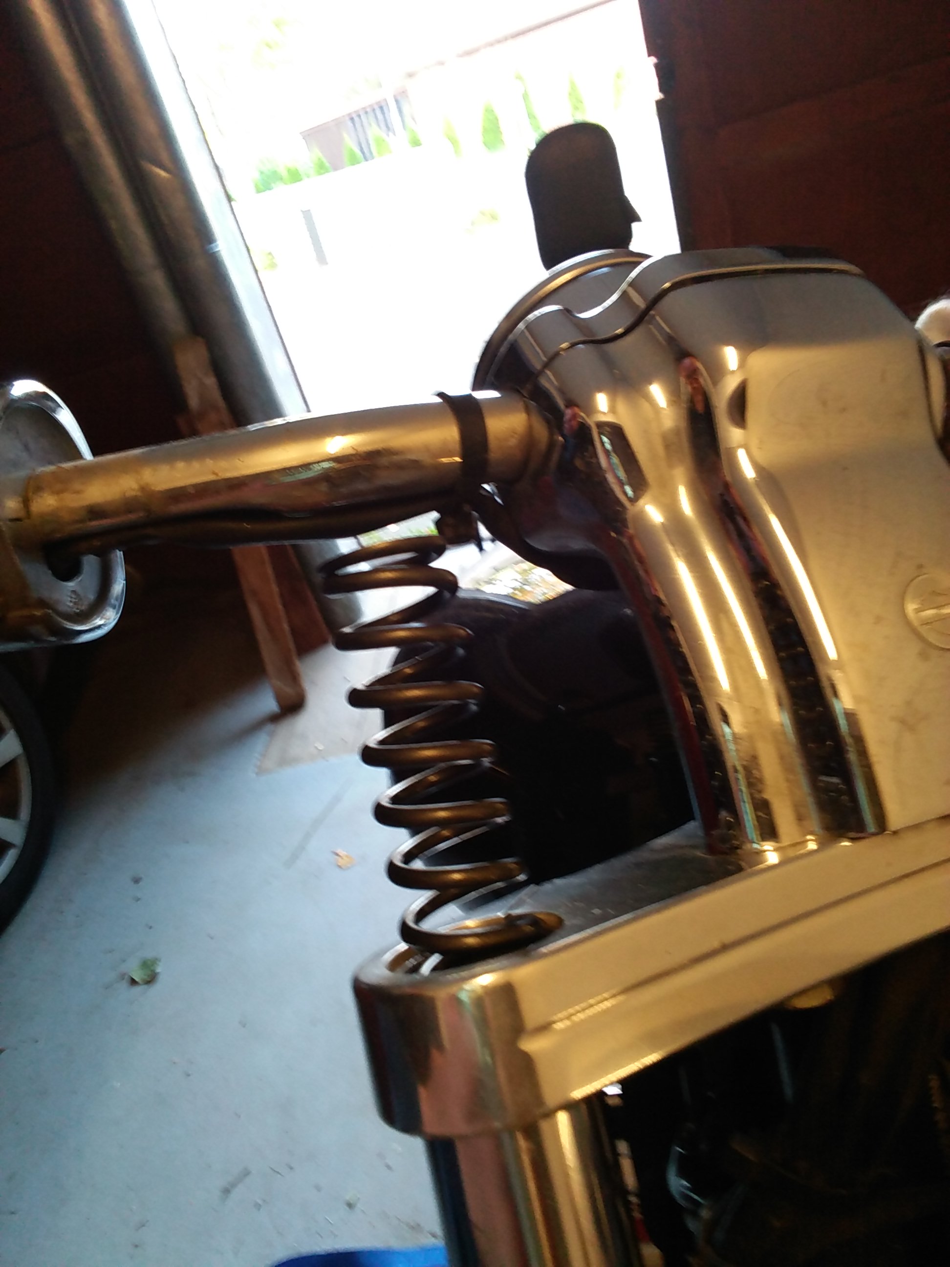 - Olipas mielenkiintoinen urakka vaihtaa öljyt Sportster etuputkiin. Jousi pomppasi 10cm ulos ja eka tulppa voimalla autotallin kattoon.Meni koko päivä tallissa ennen kuin sain sen takaisin. Piti tehdä puristin ja työkalu millä tulppaa sai kierrettyä.  Ja sit asetella tulppa suoraan, että sen sai oikeille kierteille. Sitä pitää kiertää "sokkona", kun ei oo mitään tuntumaa, meneekö se oikeille jengoille.